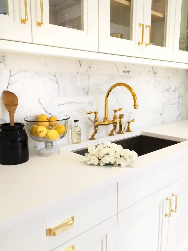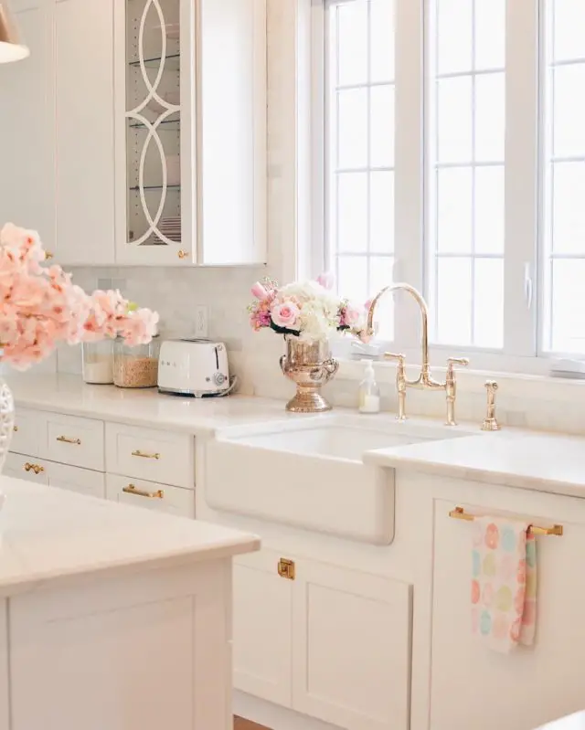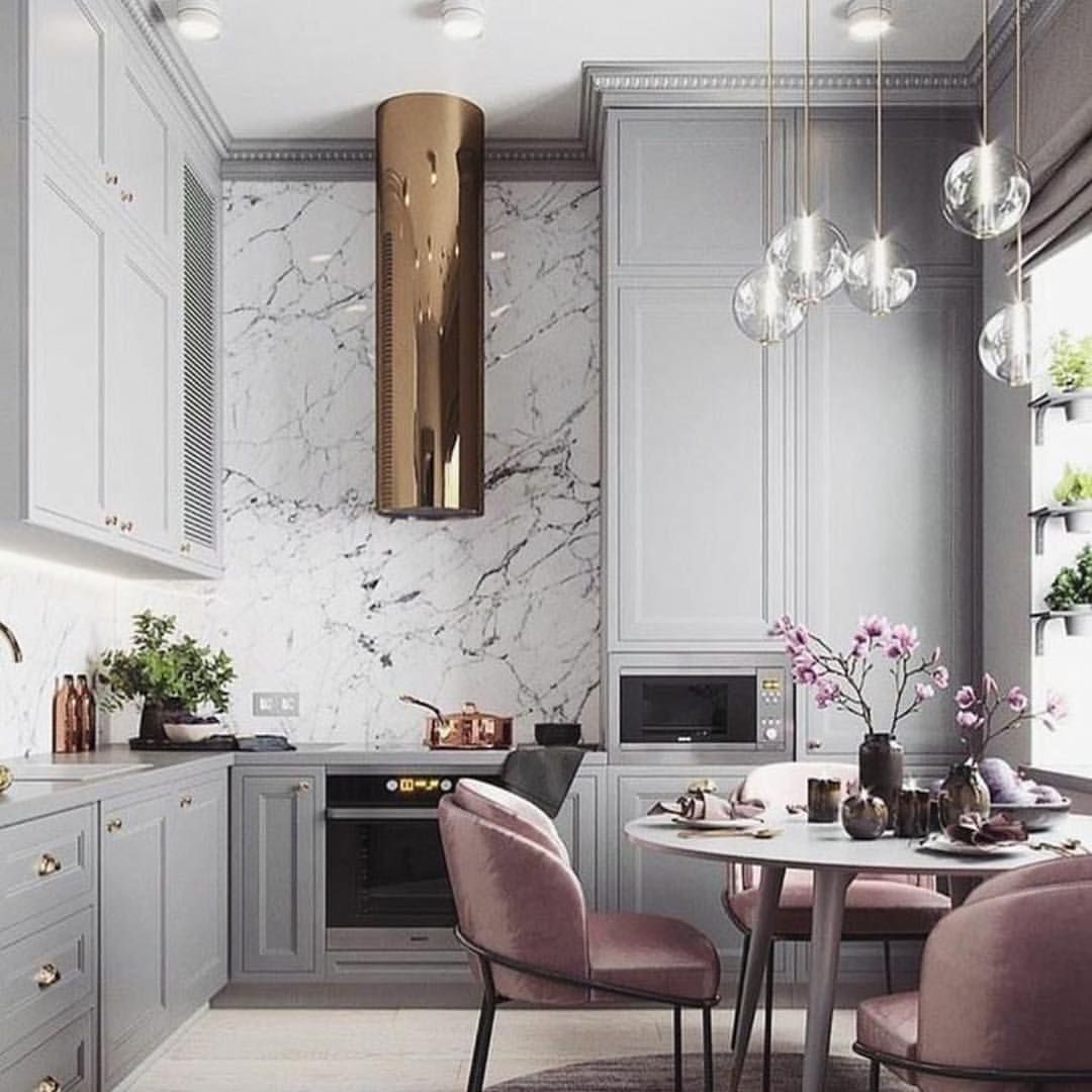 Et avant de vous laisser avec des images d'inspiration pour vous aider à créer une atmosphère élégante et féminine dans votre cuisine, je voulais revenir sur l'importance de la luminosité dans cet espace de la maison. Quelle soit naturelle ou artificielle, la lumière est très importante dans la cuisine. Elle va vous permettre de cuisiner et de vivre dans votre espace avec plus de confort. N'oubliez donc pas la place des luminaires dans votre projet déco. J'aurais l'occasion de vous en reparler ce mois-ci avec plus de précisions. En attendant, voyez les luminaires de votre cuisine comme étant des alliés déco qui vous faciliteront la vie. Pour vous aider à bien les choisir, une question à vous poser: Comment je peux éclairer l'espace pour que ce soit plus agréable pour moi de cuisiner / ranger / faire les devoirs avec les enfants?