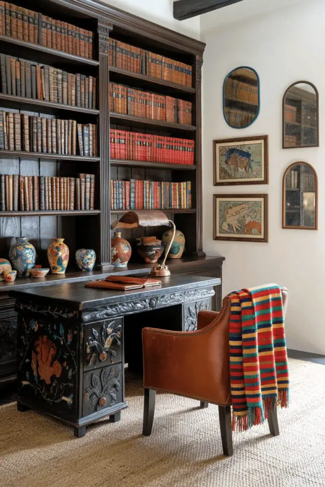 Les avantages de créer un espace de travail dans la salle à manger? Avoir un espace à l'écart et cloisonné sans empiéter sur le confort de la maison, travailler au calme et sans la distraction de la télévision