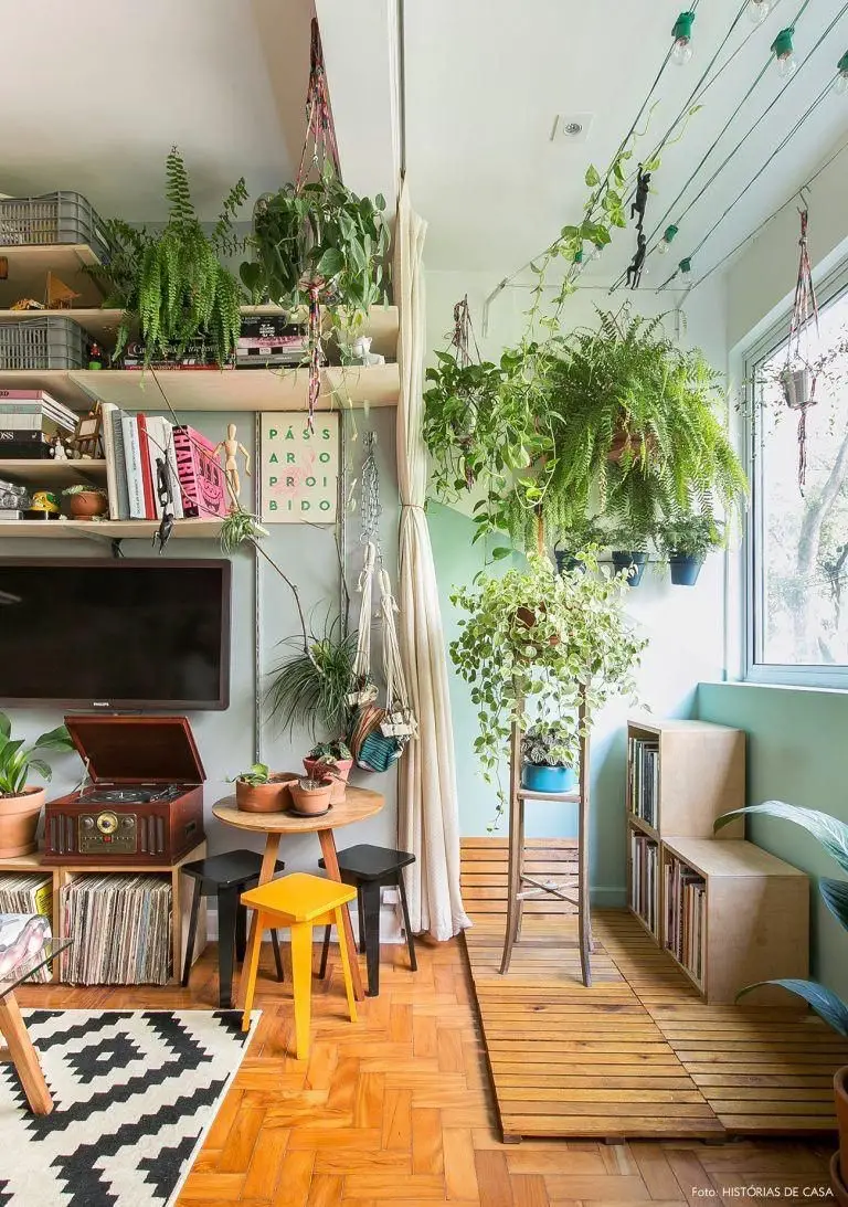 - Des plantes, un diffuseur d'huiles essentielles, une petite table pour travailler entourée de verdure