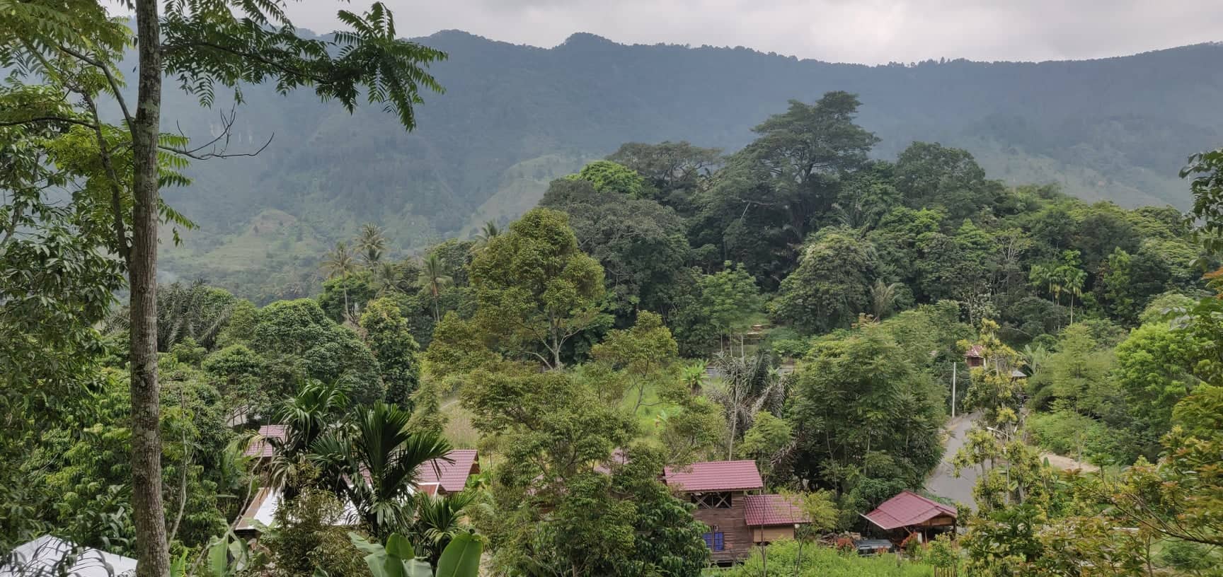 Les paysages sont magnifiques et en bas de la photo vous pouvez voir 2 toits Batak avec leur forme vraiment originale