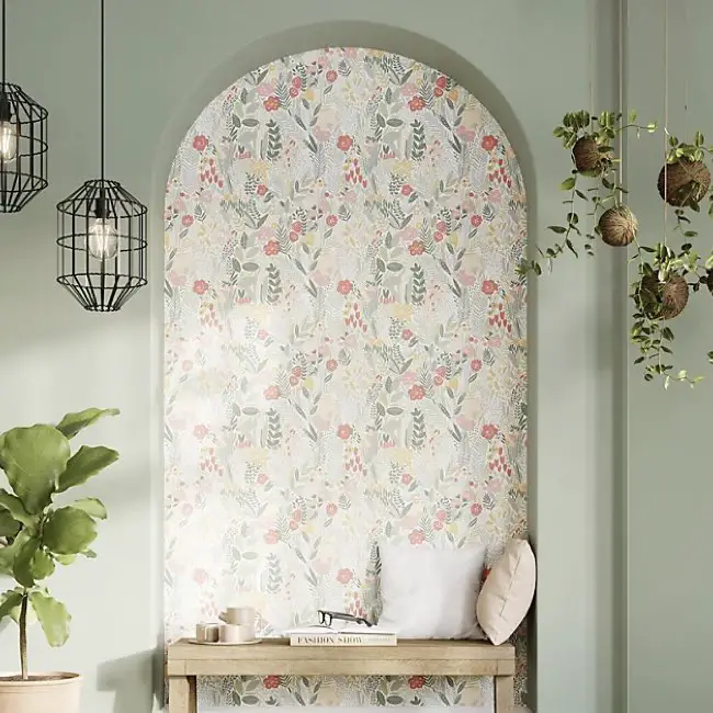 Références des produits en slide: 1. Lambris lamelles bois naturel 2. Papier peint Vinyle Intissé motif art déco 3. Crédence de cuisine auto-adhésive terrazzo 4. Papier peint pré-encollé vinyle motif floral 5. Papier peint Vinyle Intissé esprit vintage