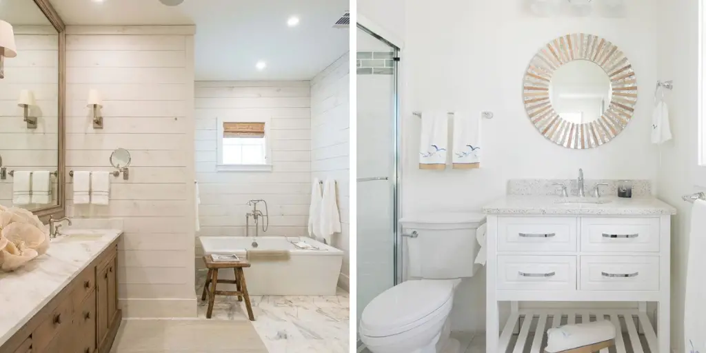 Carrelage blanc - simplicité et neutralité pour une salle de bain bord de mer