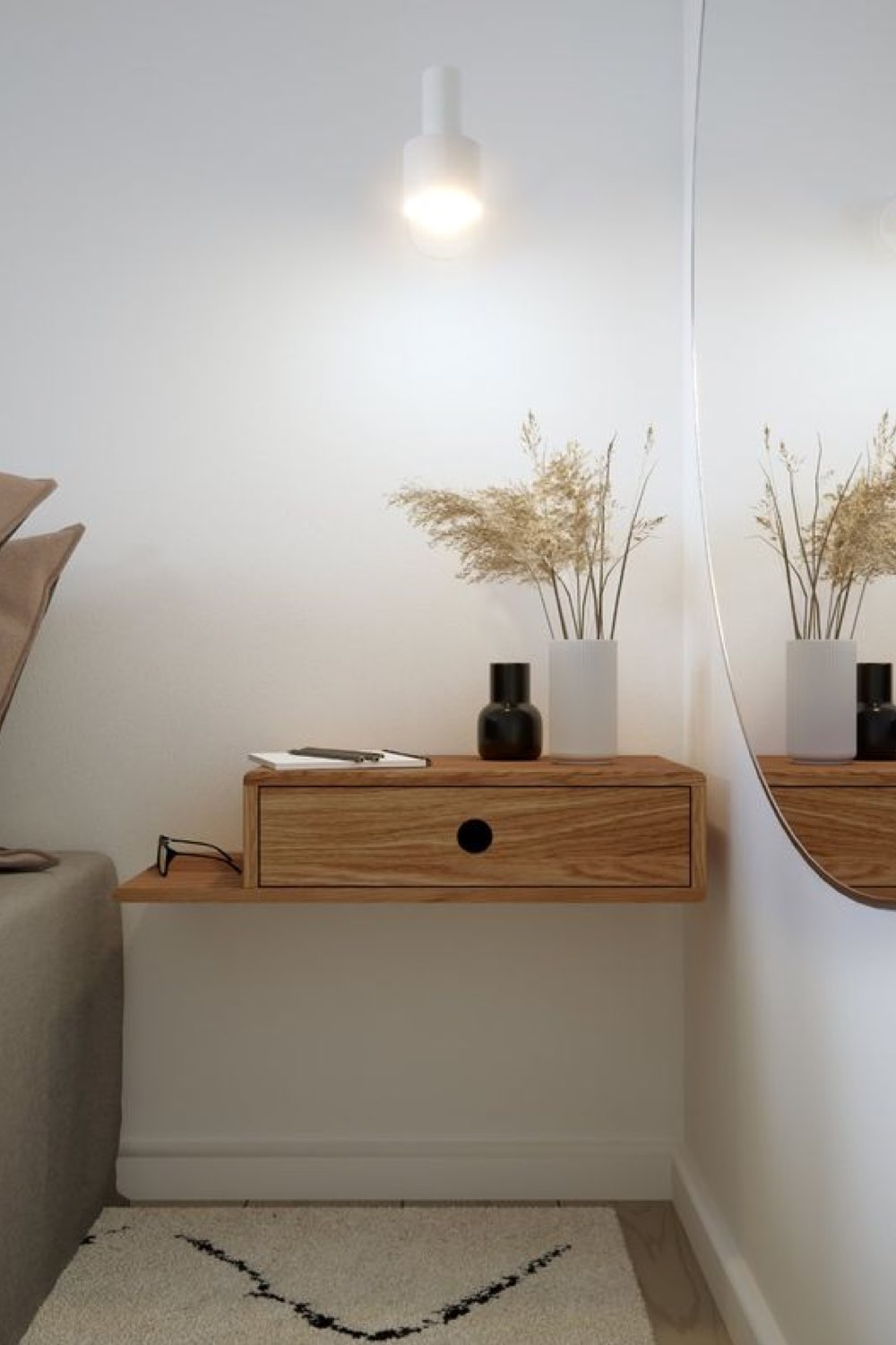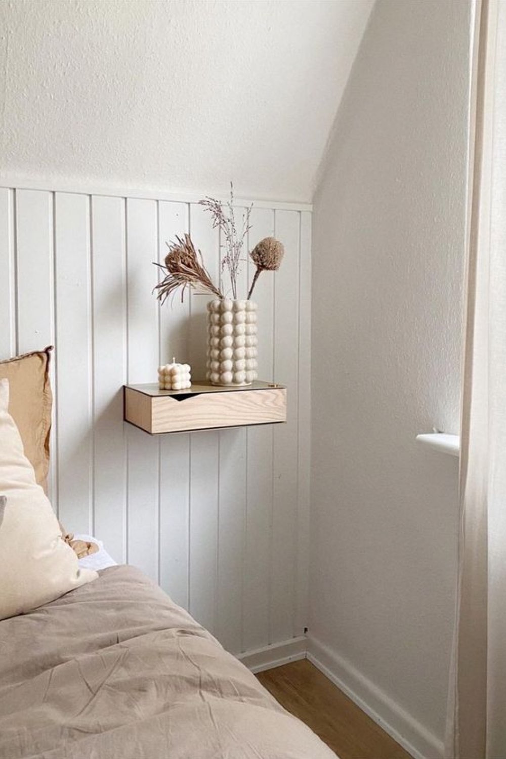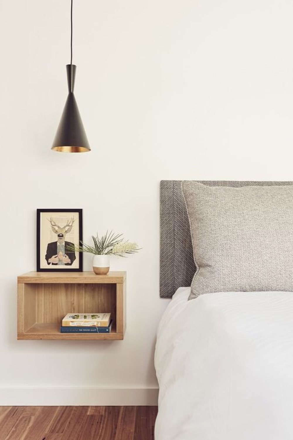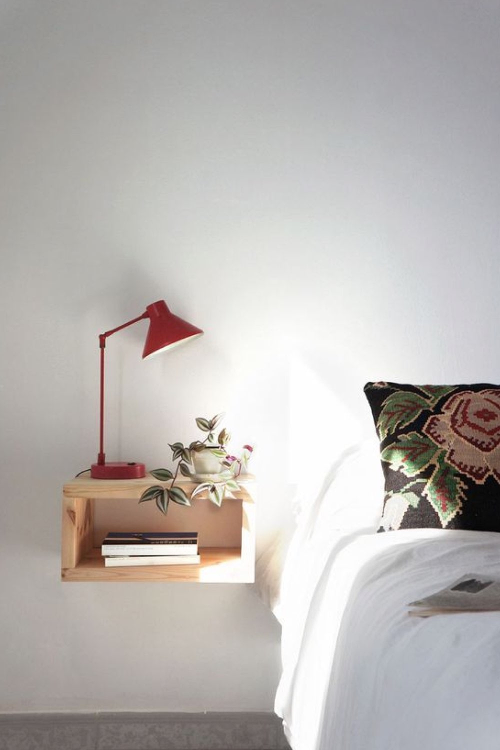 1. Belle d’idée de décoration intérieure surtout pour les tables de chevet suspendu, ça fait gagner plus d’espace…