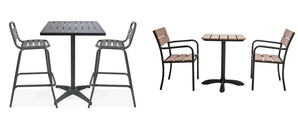 Si vous avez un tout petit extérieur, les tables rectangulaires sont à éviter. On partira plus sur une table carrée ou ronde. Ces modèles sont moins encombrants. Le choix des assises entre en compte aussi. Les fauteuils de jardins sont généralement plus encombrants que les chaises. (Et c'est valable aussi à l'intérieur dans le cas d'une petite salle à manger par exemple!) Vous l'avez remarqué probablement avec ma sélection shopping précédente: le mobilier en métal est moins encombrant aussi que du mobilier en résine tressée par exemple.