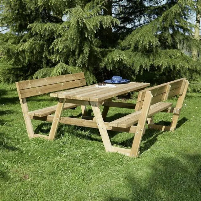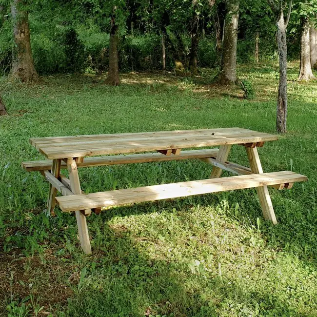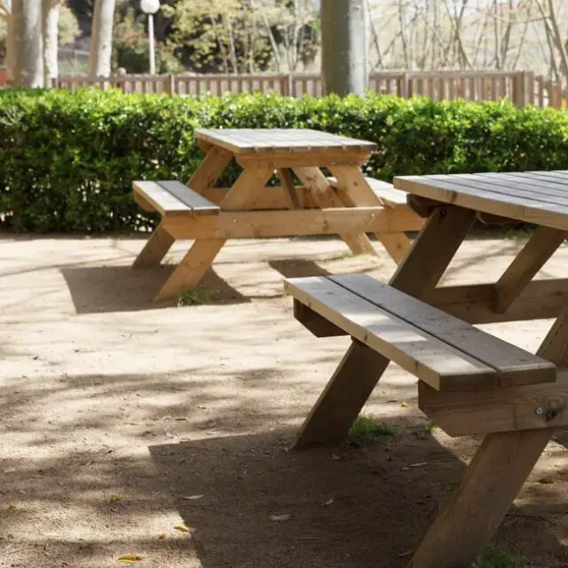 Une table de pique-nique standard est rectangulaire mais il existe des modèles ronds plus conviviaux. - Avec ou sans bancs intégrés?