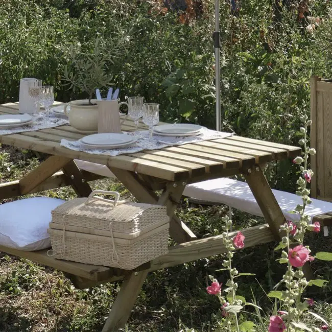 Quand on parle salon de jardin, on voit souvent une jolie table avec des fauteuils confortables. Et c'est chouette de voir que le salon de jardin en plastique n'est plus si fréquent! Aujourd'hui, on reste dans l'univers du jardin mais on change d'atmosphère. On va parler de table de pique-nique. Je vais vous dire où acheter une table de pique-nique et on va voir entre autre comment l'entretenir ou comment la choisir.