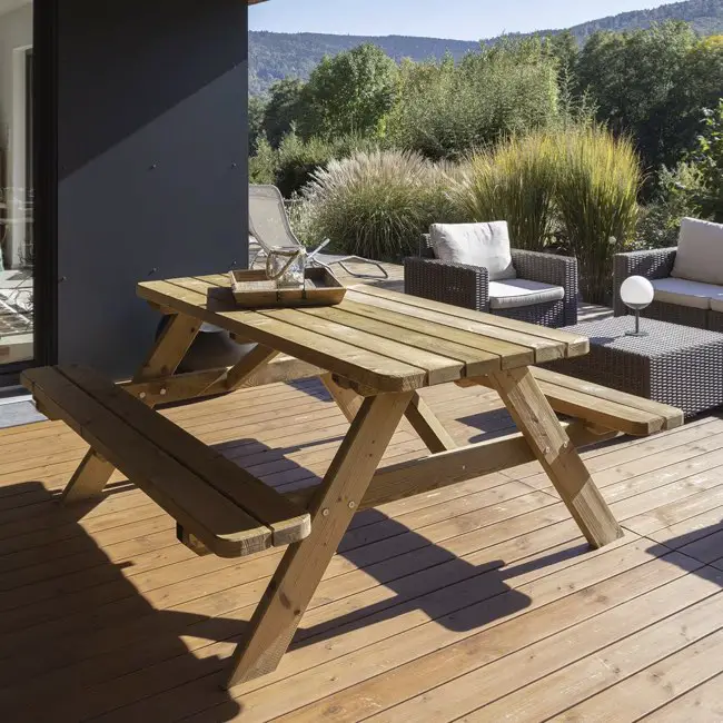 L'entretien de votre table de jardin va dépendre de l'essence de bois qui la compose. La plupart du temps, les tables de pique-nique sont déjà traitées quand elles sont neuves. Après plusieurs hivers passés en extérieur, il faudra prévoir un traitement anti-UV et / ou un traitement antifongique. Avec le temps, il faut veiller à la nettoyer régulièrement. Au printemps pour enlever les feuilles mortes. Après chaque utilisation aussi.