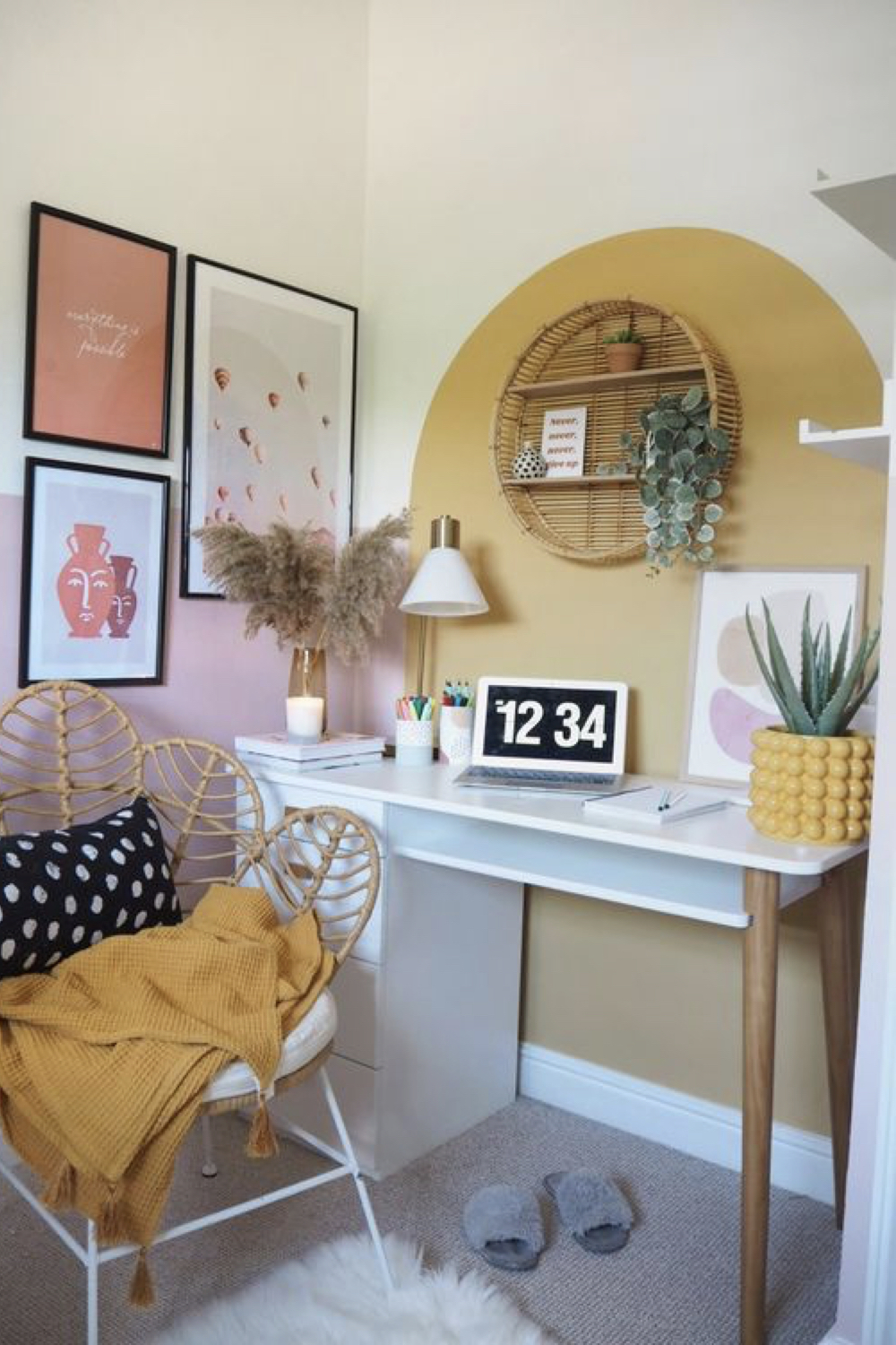 - Ocre, moutarde et terracotta: un bureau naturel et chaleureux