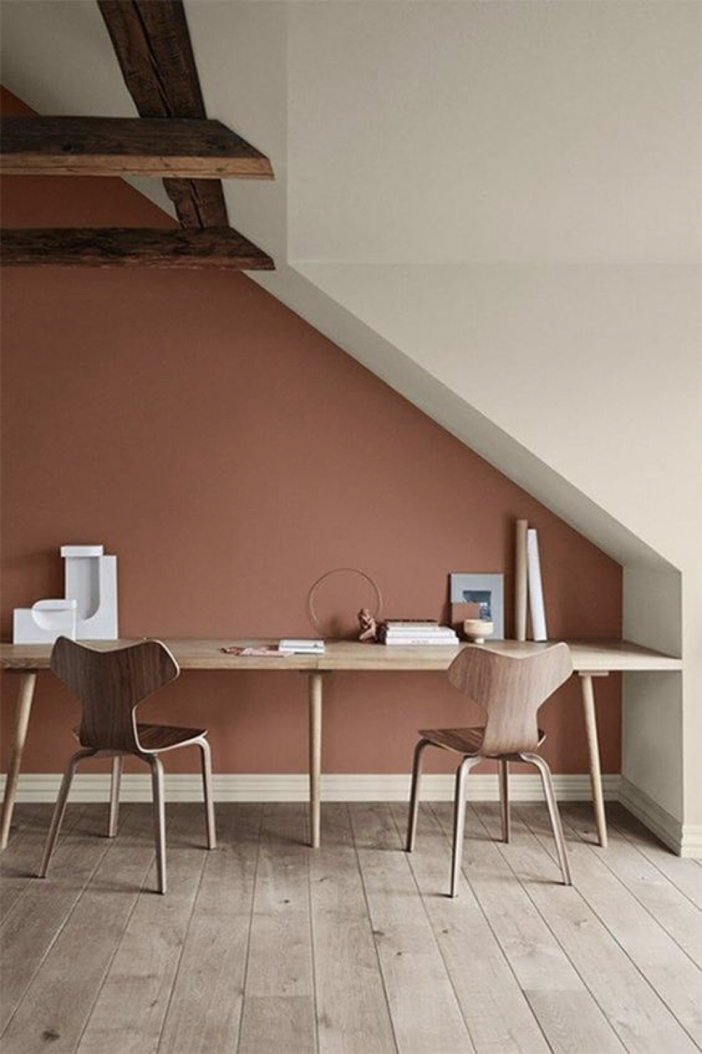 On reste dans la même ambiance que le vert avec des couleurs inspirées de la nature. Les couleurs ocre, moutarde, safran ou encore terracotta sont des références explicites à la nature. En revanche, ce sont des couleurs bien plus chaleureuses que le vert. Il suffit d'une petite touche de jaune moutarde pour réchauffer un bureau un peu trop froid. Ce qui me plait aussi avec ces couleurs c'est qu'elles permettent de se sentir un peu en vacances toute l'année, même quand on travaille.