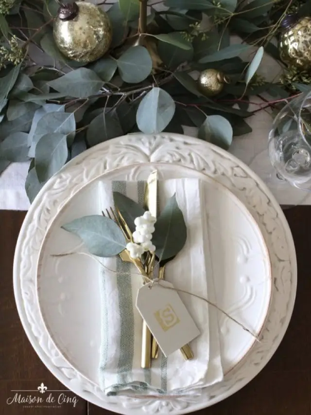 03 • Une table simple et raffinée pour Noël avec une branche d'eucalyptus