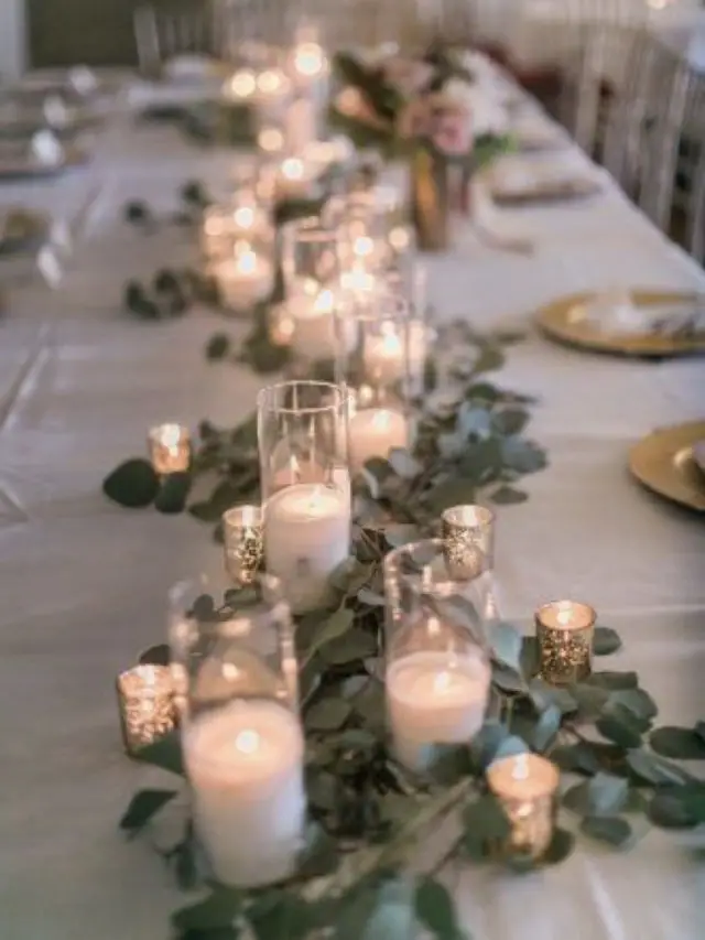 05 • Petites bougies blanches et eucalyptus pour un chemin de table lumineux et naturel