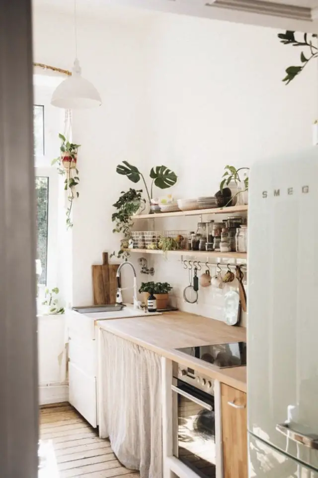 Le style naturel est le style qui me plait le plus en ce moment. Je le trouve vivant et moderne. Il correspond aussi à des valeurs qui me sont chères: une touche de slow, une place particulière pour la végétation, un intérêt au quotidien pour l'environnement: le notre, direct mais aussi celui de l'extérieur. Dans la cuisine, le style nature peut prendre différentes formes. Nous allons le voir dans la suite de cet article. Une cuisine nature va de paire avec une meilleure alimentation plus saine, avec de petits réflexes au quotidien (comme le fait de composter ses déchets). Ce n'est pas juste une question de déco. Ici la décoration s'inscrit dans une démarche plus générale. En plus, c'est une atmosphère assez facile à mettre en oeuvre - même quand on n'a pas un gros budget déco. Alors, comment créer une ambiance naturelle dans la cuisine?