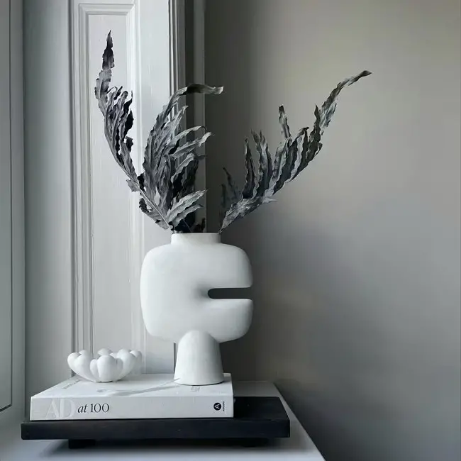 Autre ambiance: les fleurs séchées. Elles ont la côte en ce moment. On les trouve dans les intérieurs slow mais aussi dans les intérieurs modernes. On les trouve de différentes tailles aussi. En grand format dans une jarre à côté du canapé ou d'un buffet. En petit format dans un vase sur une console. Pas besoin d'eau pour les garder fraîches.