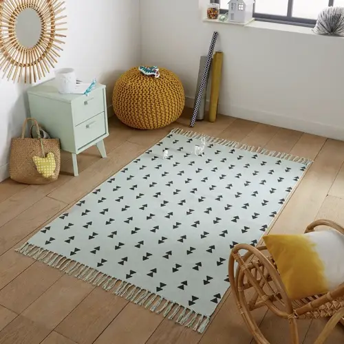 Changement de décor. Si vous souhaitez rester dans le thème du naturel mais sans tomber dans les décors de jungle / forêt pourquoi ne pas opter pour un arc en ciel. C'est un phénomène naturel qui éveille l'imaginaire des petits comme des grands. Il y a toujours quelque chose de magique à voir un arc en ciel. Je trouve aussi qu'il y a une note d'espoir. En plus de cette symbolique, l'arc en ciel permet d'apporter de la couleur dans la chambre de votre enfant, même si on décline une seule couleur de différentes nuances. L'arc en ciel peut prendre différentes formes: un dessin sur le mur (pas besoin d'avoir des compétences de ouf pour le réaliser vous-même. Il peut aussi être présent dans différents éléments de déco comme le tapis. Enfin, on peut revenir sur sa forme: simple et douce parfaite pour la chambre d'enfant.