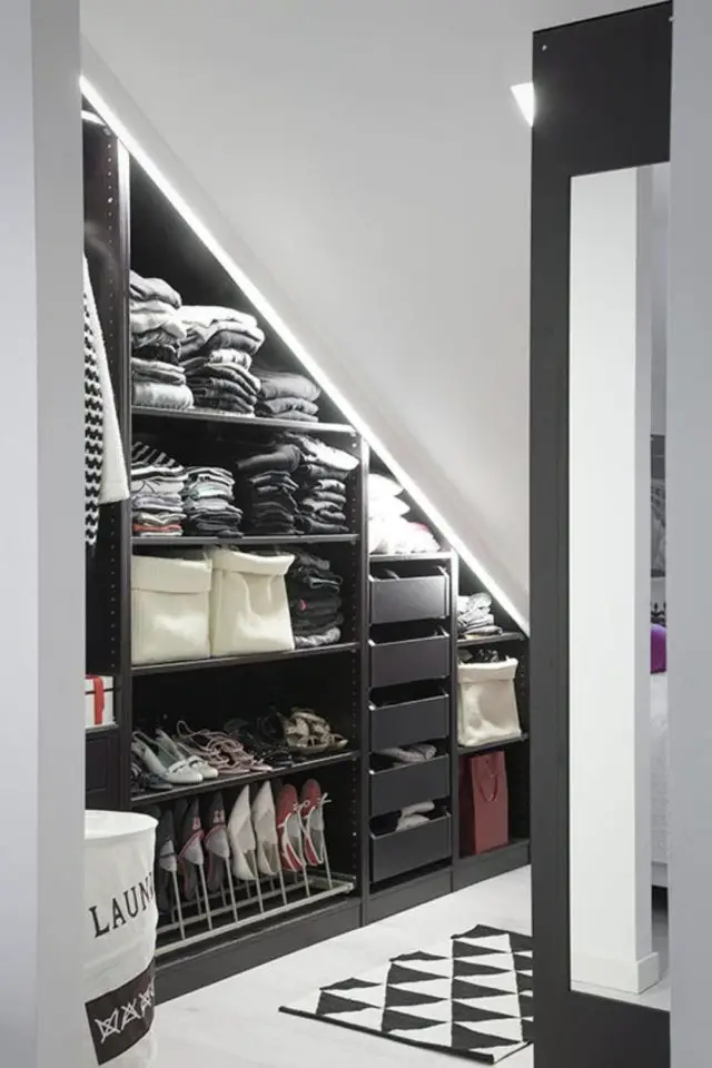 Enfin pour terminer, un petit détail auquel penser si vous prévoyez de rénover vos combles et d'y créer un espace dressing: n'oubliez pas d'intégrer de la lumière dans vos placards. C'est un petit détail qui apportera un peu plus de confort dans votre quotidien. Le cadre de la rénovation est parfait pour y penser puisque vous pourrez tirer vos câbles électriques pendant les travaux d'isolation.