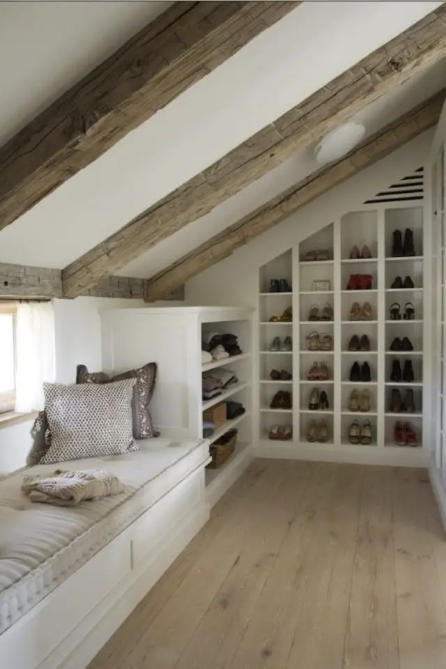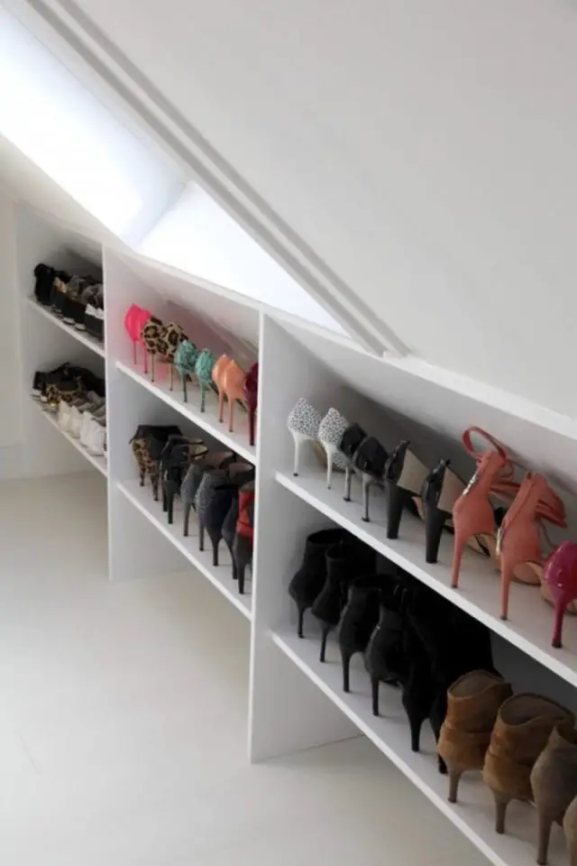 Petite pensée pour les accros aux chaussures... J'en étais une avant. Les chaussures peuvent trouver leur place aussi dans les combles. Oui, l'entrée est normalement au rez-de-chaussée, les combles plusieurs étages au dessus. Mais cette solution de rangement peut-être pratique pour ranger les chaussures dont on n'a pas utilité au quotidien. C'est aussi une manière de stocker les chaussures pour qu'elles ne s'abiment pas. On les range par paire pour gagner du temps quand on a envie de changement.