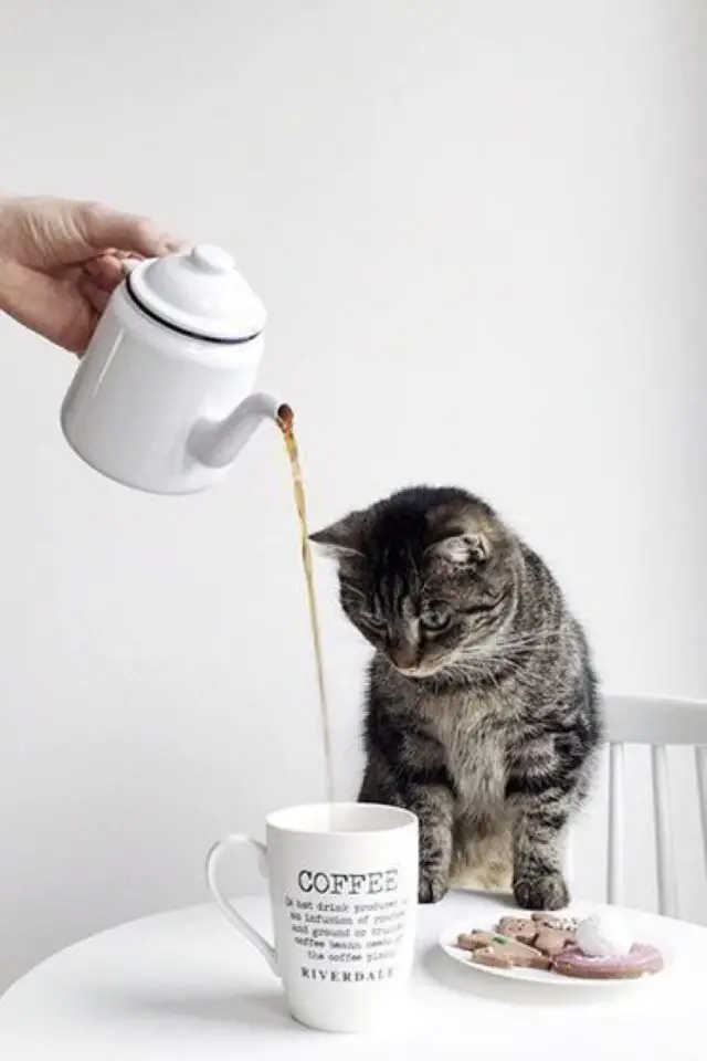 Je suis une grande buveuse de café depuis des années. Il n'y a que dans certains pays où je veux bien troquer le café par du thé mais au final, ils sont assez rares... Et pour un moment de tranquillité, pour se ressourcer, il n'y a rien de tel que d'avoir un chat sur les genoux en buvant son café. Sentir la chaleur du café et du chat, être attentif(ve) à ses ronronnements. Je parle du chat, si votre café ronronne, il y a un problème quelque part! C'est un petit instant facile à apprécier au quotidien. Pas besoin d'être riche pour savourer ce moment. Il est à la portée de toutes et tous à partir du moment où vous avez un café et un chat sous la main. Le café est certes plus docile que le chat mais ce dernier aime normalement les moments de papouilles et ne se fera pas prier.