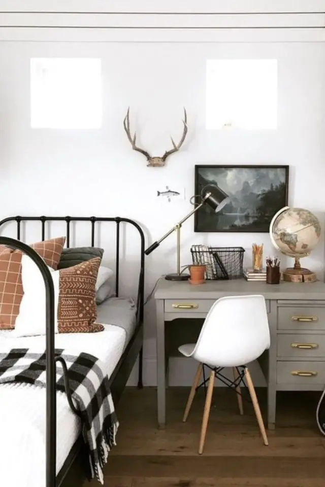 Si vous aimez le vintage et chiner une partie de votre déco, votre passion se ressent peut-être dans la chambre de votre enfant. En braderie, il y a toujours une question de chance. On ne sait jamais sur quoi on va tomber. Vu que le lit en métal est relativement neutre, on peut s'amuser à le marier avec des meubles sortis d'autres époques. Ce qui vient à l'esprit assez spontanément, c'est l'armoire parisienne. Pour le coup, on est plus ou moins sur la même période de l'histoire. En revanche, on peut par exemple associer le lit en métal avec du mobilier mid-century qui généralement a été pensé pour les petits espaces. Cela donnera sans aucun doute beaucoup de style à la chambre de votre enfant.