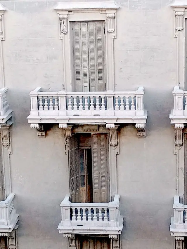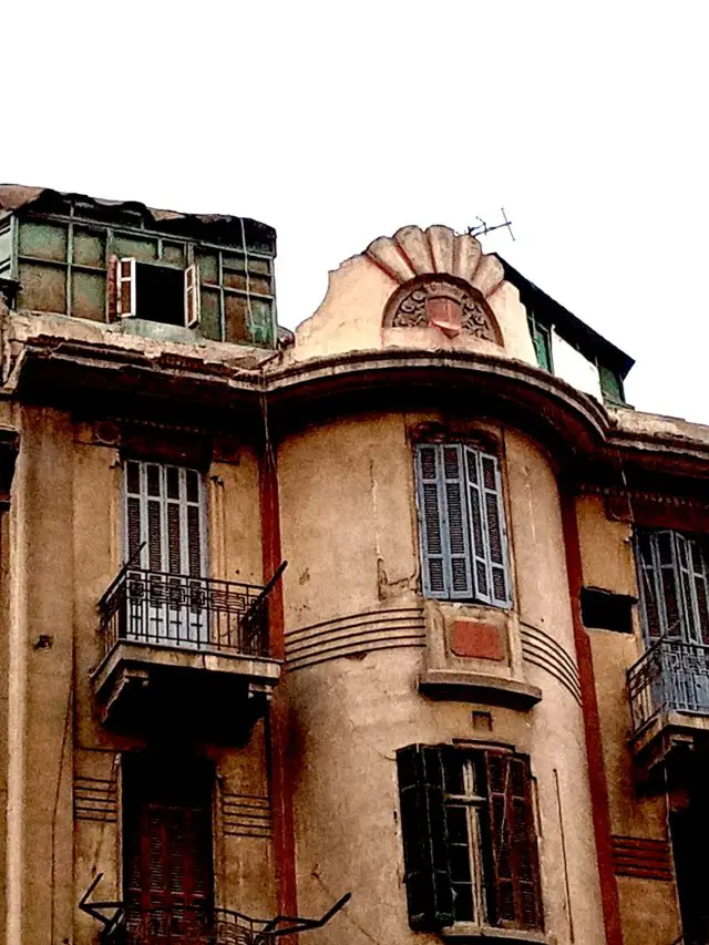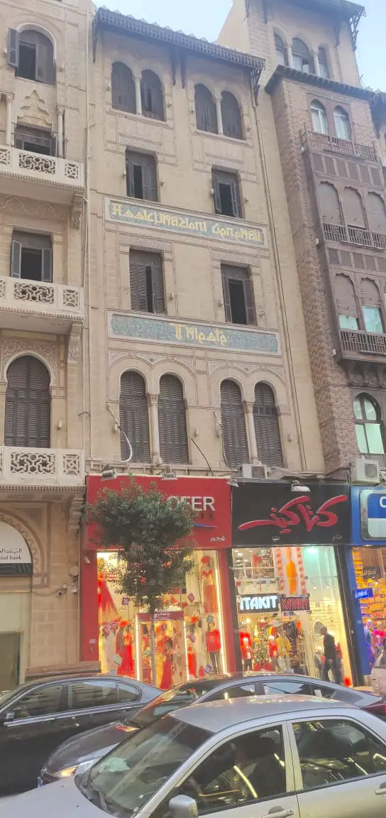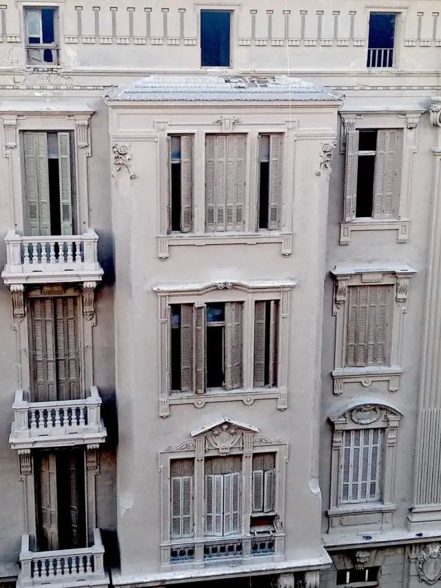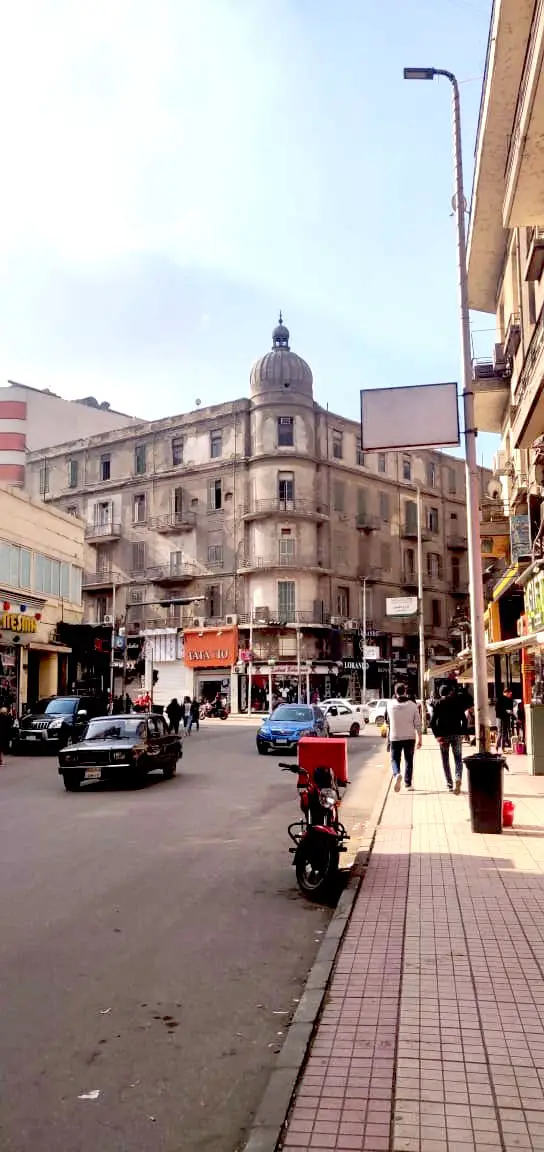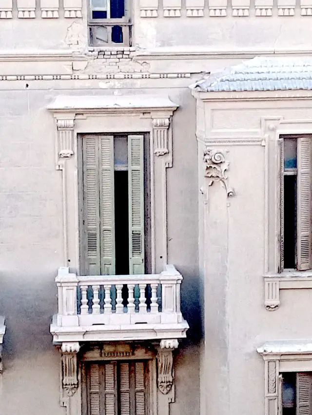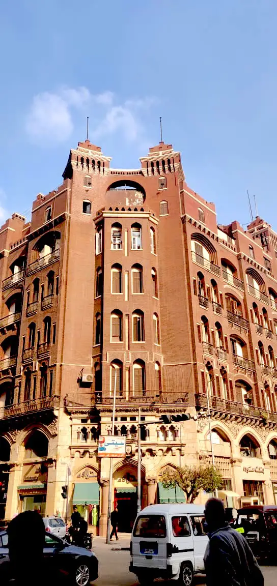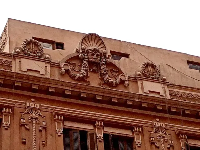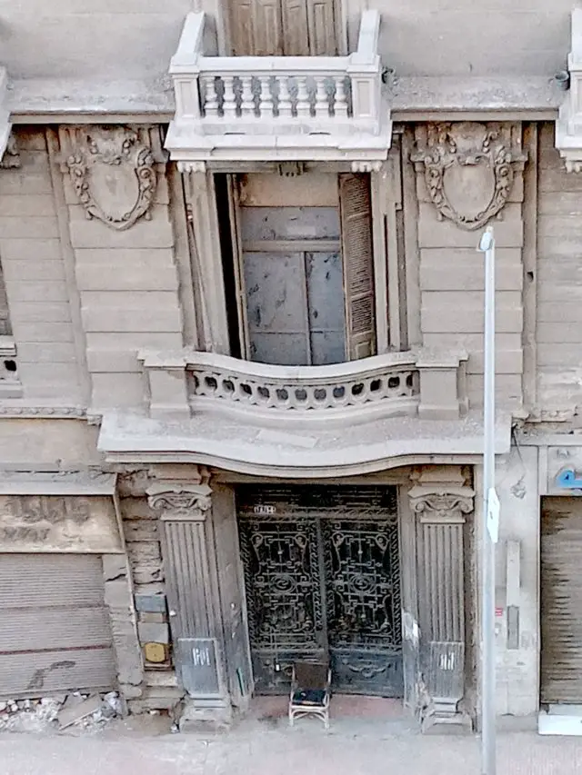 Le Caire Khédivial est composé de grandes avenues avec des passages à foison plus ou moins vivants. D'ailleurs, si un jour vous visitez le Caire, allez dans ces passages, c'est là où vous trouverez de la "street food" et de la food tout court. C'est pas comme s'il y avait un choix immense dans ce quartier. Les bâtiments anciens sont nombreux et de différents styles. On va trouver du classique haussmanien juste à côté d'un immeuble de type Art Déco. Il y a un tas de détails à regarder. Je passe bien souvent le nez en l'air même si c'est assez dangereux. Voitures comme piétons ne sont pas des plus faciles à vivre ici. (Il va falloir que j'aille faire un tour tôt le matin pour avoir la paix, il n'y a personne ou presque avant 10h...) Parfois sur les bâtiments se trouve une plaque avec le style d'architecture, le nom du premier propriétaire. Souvent une illustre personne que je ne connais pas.