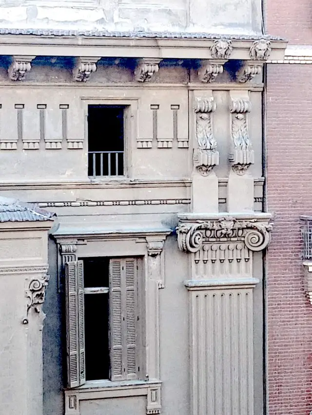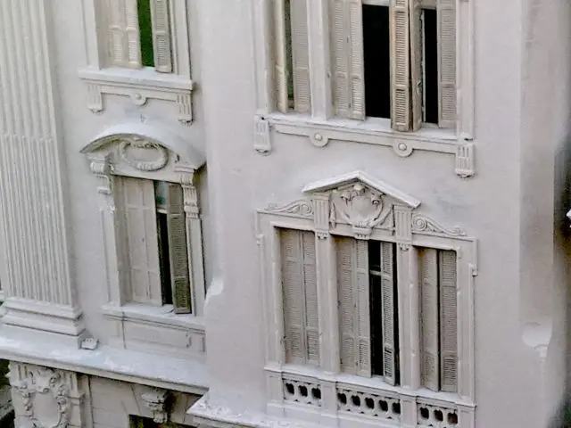 C'est l'immeuble qui se trouve juste devant notre chambre. Je ne me lasse pas de le regarder. Il y a toujours de nouveaux détails à découvrir. Et si vous regardez bien, sur la dernière image, il y a un chien. C'est celui du gardien. Tous les jours, il se met à cet endroit et prend l'air tranquillement.