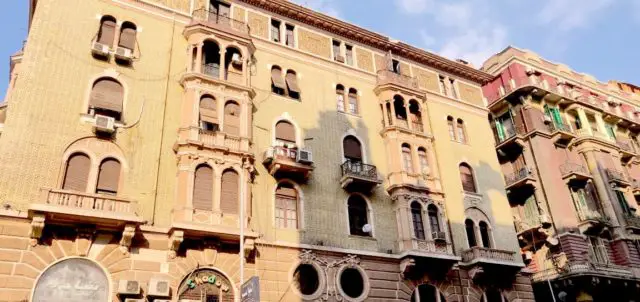 A cette époque, il y a aussi un élément décisif: la percée du canal de Suez (de 1859 à 1869). Cette initiative (française) permet de relier la Méditerranée et la Mer Rouge et donc de faciliter le commerce avec l'Asie et la route de l'Inde. Un jour je me pencherai peut-être sur la question du canal de Suez; Pour le moment, il faut garder en tête que cette construction et ce nouveau passage va donner une place de choix à l'Egypte dans le commerce européen. Le nouveau quartier dans la capitale va donc accueillir des personnes fortunées locales et étrangères. C'est d'ailleurs la crise de Suez (à partir de 1951) qui va vider l'Egypte des expatriés et donc vider aussi une partie du quartier.