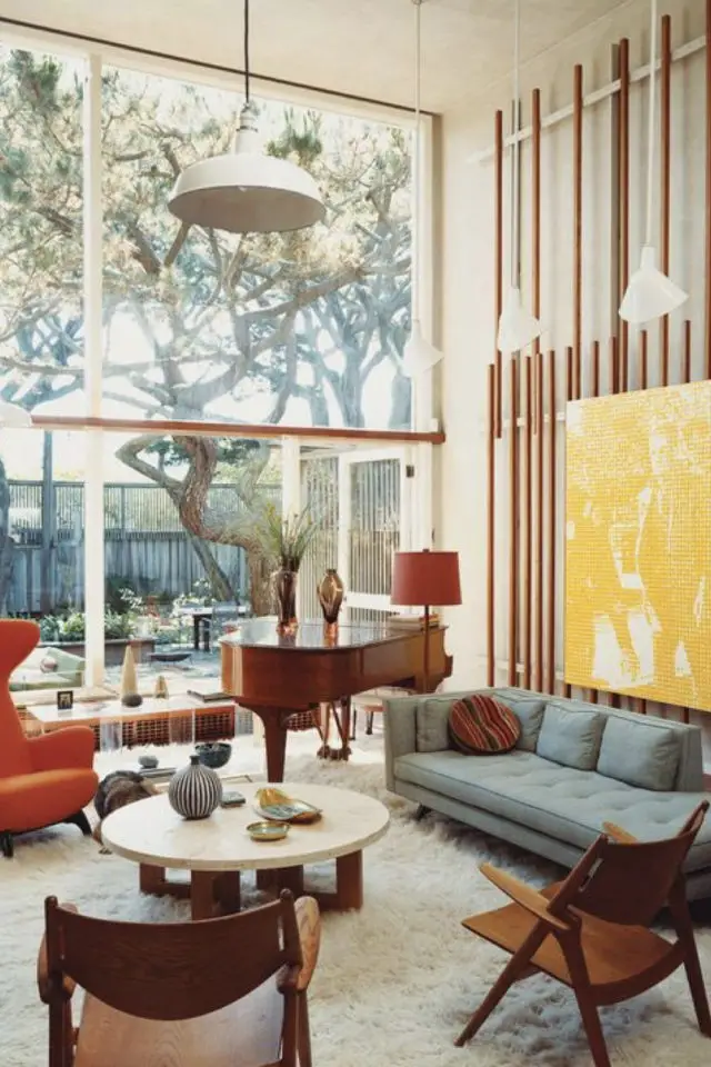 On parle souvent de mobilier mid century mais cette époque ne se résume pas qu'à une question de meubles. C'est une période qui se démarque par de l'innovation notamment quand il est question d'architecture. C'est aussi un mouvement coloré. Les photos d'époques, en noir et blanc, ne leur rendent pas hommage. Pourtant elles faisaient partie intégrante de la démarche des designers. Ce sont des couleurs vives, flamboyantes qui même plus de 70 ans après mettront de la bonne humeur dans votre intérieur. Alors, comment utiliser les couleurs mid-century dans votre déco?
