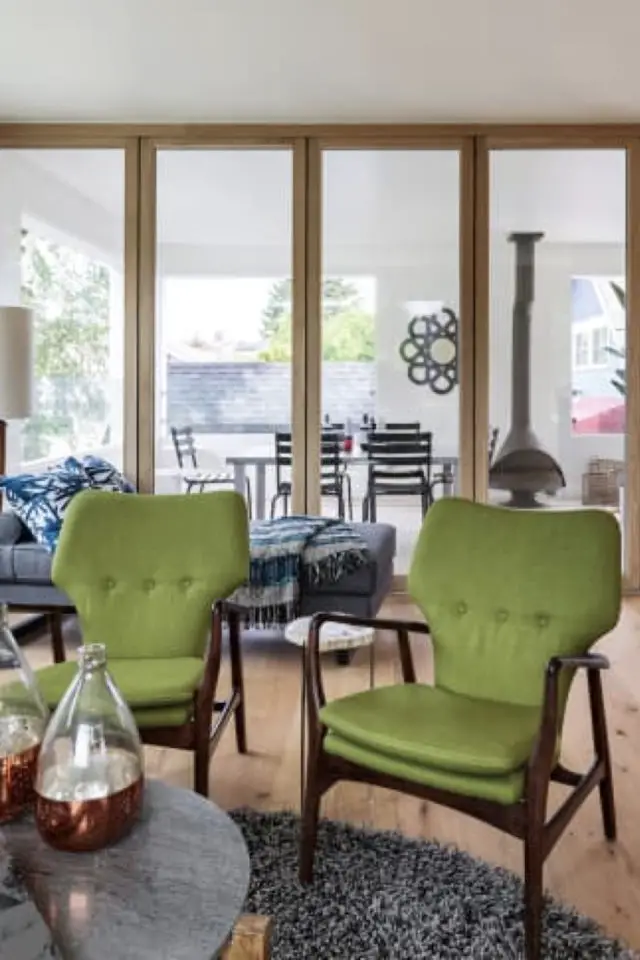 Le vert mid-century me semble facile à intégrer dans votre intérieur même à notre époque. Le vert est synonyme de nature et c'est une thématique qui est intemporelle. L'association vert + bois + blanc est facile et naturelle. Elle ne va pas être choquante. Elle ne va pas être étonnante. Cette facilité à vivre avec laisse une place plus grande à l'originalité ailleurs. Prenons l'exemple d'un fauteuil avec des formes qui sortent de l'ordinaire. Si ce fauteuil est rouge, on ne verra que lui dans la pièce mais on verra la couleur avant tout, avant sa forme et son design. Si on choisi ce même fauteuil en vert cette fois. La couleur va nous interpeller mais elle se laissera oublier pour profiter pleinement de la forme du fauteuil et de ses détails.