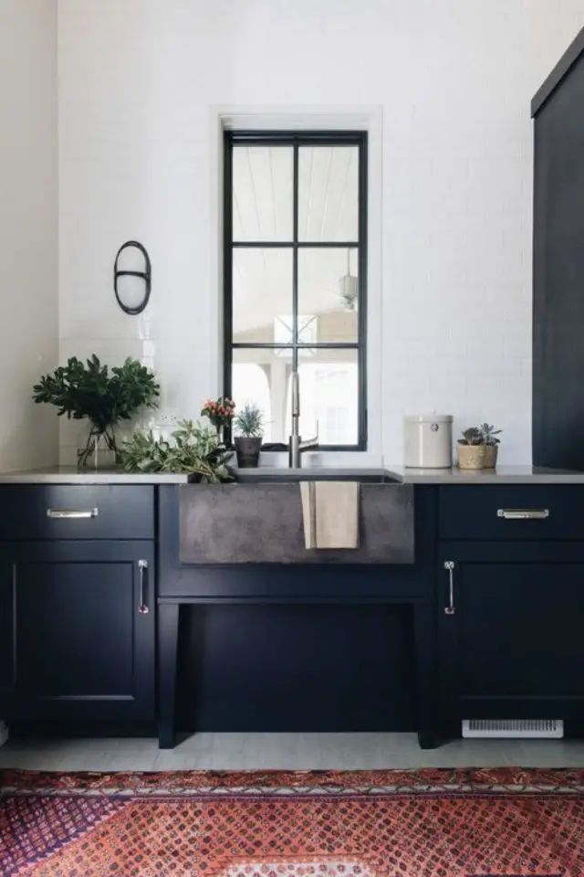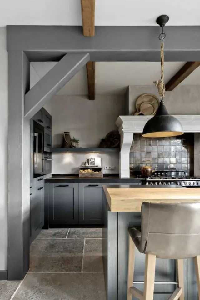 Les couleurs foncées ont la cote. Et elles peuvent avoir leur place dans un style classique chic. C'est le cas pour toutes les pièces de la maison. Il n'y a pas de raisons pour que la cuisine fasse exception. Si vous voulez une couleur sombre dans la cuisine, il y a deux choses à prendre en considération. La première c'est la luminosité de votre pièce. Si elle n'est pas assez lumineuse, cuisiner va être pénible. La deuxième, ce sont les petits détails. Ils vont vous permettre de ne pas tomber dans une ambiance trop moderne. Il faudra donc choisir avec soin la robinetterie, les poignées de portes de placards, les luminaires... Ce qui me plait avec les cuisines classiques et sombres, c'est qu'elles créent un univers intime et réconfortant. Le noir, le gris anthracite sont assez cosy.