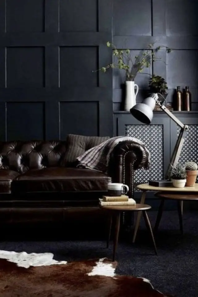 J'aime le cuir dans la déco de manière générale parce qu'il est naturel et il confère à la pièce un sentiment de profondeur. Il a du caractère et d'autant plus quand il est patiné par le temps. Le cuir et le rock sont indissociables: on peut penser au blouson en cuir et au Perfecto ou encore aux bottines en cuir et les fameuses Doc Martens. En déco, le cuir va se retrouver dans les assises surtout: un canapé Chesterfield capitonné, un fauteuil club... Le cuir est synonyme de longévité, il traverse les décennies en se bonifiant, un peu comme certains morceaux qu'on écoute et qui sont plus vieux que nous!