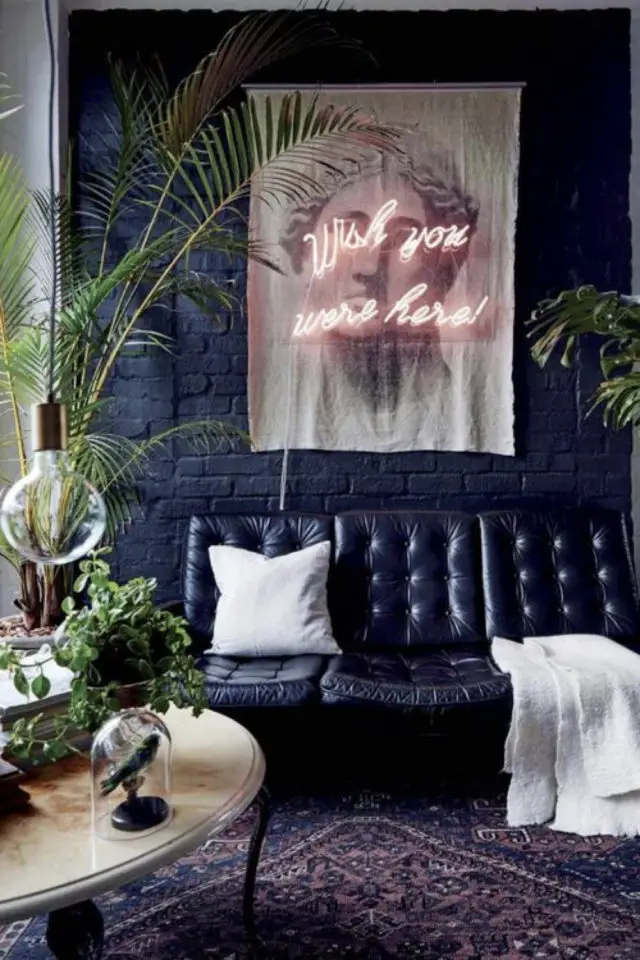 Comme je le disais en introduction, il y a de nombreux styles musicaux qu'on peut mettre dans la catégorie rock. On peut aussi bien trouver du Nirvana que du Sépultura ou encore du Elvis. Vous serait d'accord que ce n'est pas tout à fait le même délire. Dans une déco rock, c'est le même esprit. Pour certains, ce sera une déco un peu gothique et glamour. Pour d'autres, un intérieur rock se voudra plus brut sans artifices inutiles. C'est à vous de voir ce qui vous plait le plus et ver quel type d'ambiance vous voulez vous tourner. Il y a donc d'autres matériaux qui vont vous aider à créer votre décoration: Le marbre sous la forme d'un manteau de cheminée ou encore une table ancienne. Le velours pour apporter de la couleurs et de la luminosité. On peut aussi penser au néon. Pas le vulgaire néon blafard au plafond. Un néon déco avec un message qui va surprendre aussi bien par le message que par sa simple présence. A mes yeux, la musique rock comprend très bien les codes du monde qui l'entoure et en joue, parfois les envoie au diable. L'idée est de faire la même chose avec les codes déco.