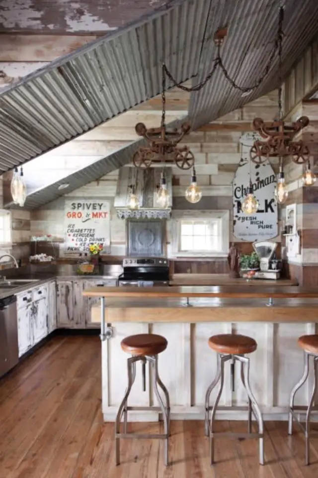 Les briques, le métal, la tôle sont aussi des matériaux qui vont apporter un sentiment d'authenticité à votre décoration. Une authenticité brute sans chichi. Le chichi on peut bien le mettre ailleurs ou s'en débarrasser totalement.