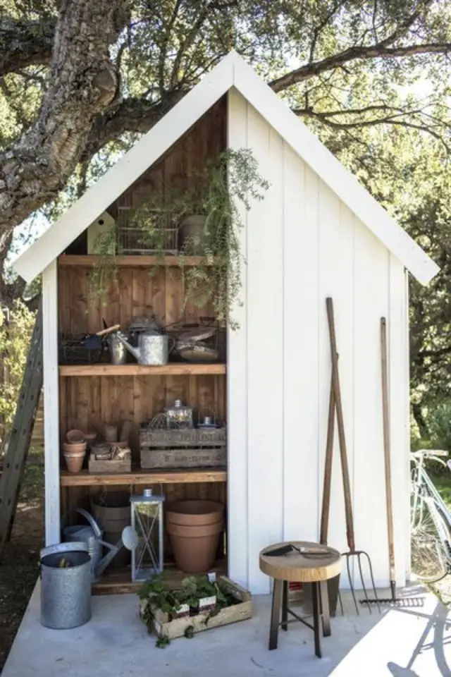 Le chalet de jardin a avant tout un intérêt pratique: il vous permet de ranger l'outillage d'entretien du jardin. Il n'a donc pas forcément besoin d'être très grand surtout s'il est bien aménagé. Si vous souhaitez ranger votre salon de jardin à l'intérieur en hiver, il vous faudra un modèle plus grand. Inconsciemment, en préparant cet article, je me suis rendue compte que les chalets qui me plaisaient avec un toit en pente à l'image d'une maisonnette. C'est un modèle assez classique. Pour un jardin plus moderne, vous pouvez opter pour un toit plat par exemple.