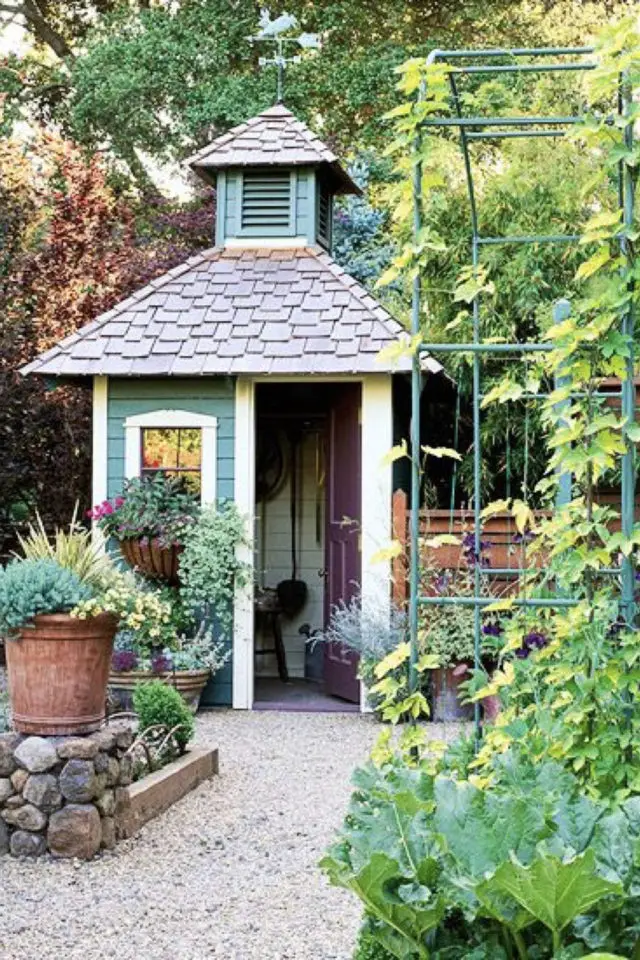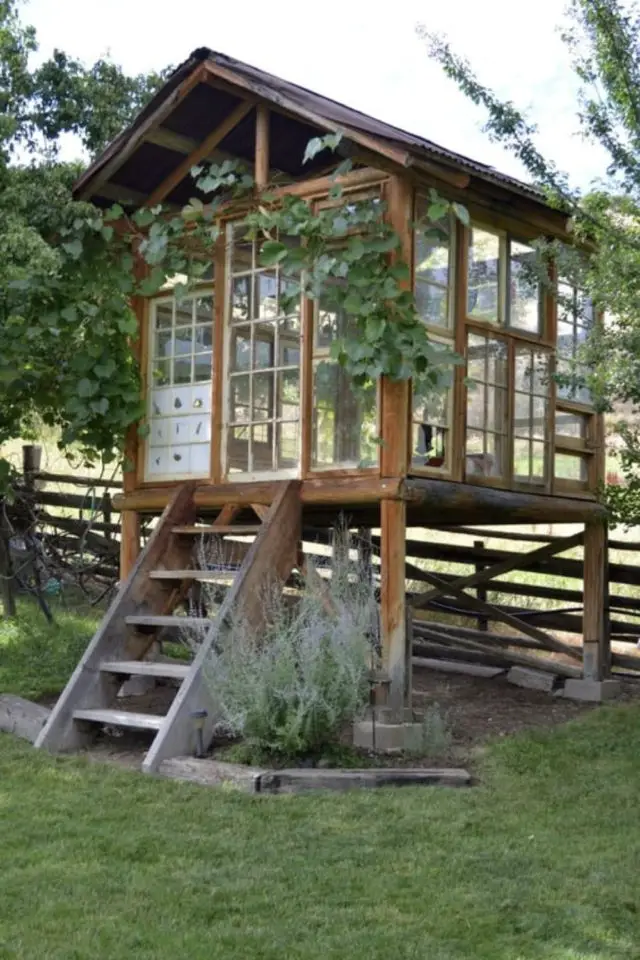 Il y a la forme du chalet mais ce n'est pas la même fonction. J'aime beaucoup les serres dans le jardins, j'aime l'idée de transparence surtout et celle de chaleur. Certaines serres ont la forme de petits cabanons et sont suffisamment grandes pour organiser vos semis et plantes. Et le petit plus si vous savez bricoler, c'est qu'elle peut être faite à partir de fenêtres de récup'. Ce type de serres apporte un charme indéniable au jardin.