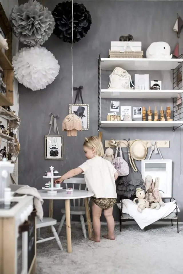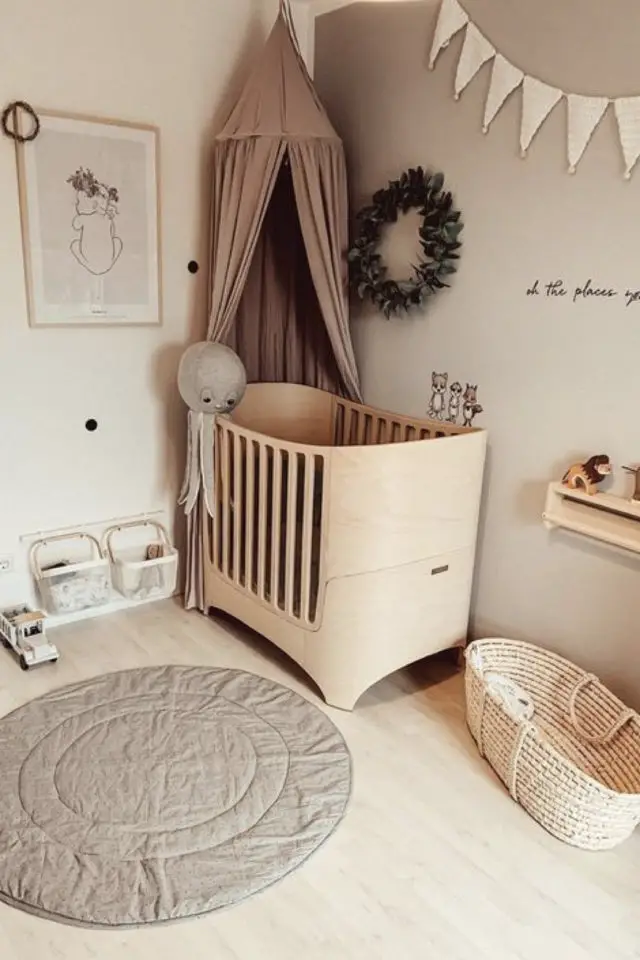 Les couleurs neutres sont généralement passe-partout. Que vous ayez un petit garçon, une petite fille, un enfant non binaire, la question de la couleur ne se pose pas nécessairement avec les neutres. De plus, ce sont des couleurs qui sont douces, notamment le gris et le beige. Elles seront parfaites pour créer un effet cocon reposant et enveloppant. Le blanc est lumineux. Le noir moins attendu et graphique. Si vous avez peur que la chambre de votre enfant soit trop neutre, n'hésitez pas à miser sur les accessoires: une étagère ronde, des patères pour ranger les vêtements le soir, le ciel de lit, le tapis ou encore les bacs à jouets. Ces accessoires apporteront de la personnalité à la chambre même s'ils sont en bois. Le bois permettant d'accentuer l'aspect douceur de la chambre. Les accessoires peuvent être colorés pour un peu plus de peps. Comme ils seront en dose homéopathique, il y a peu de chances que la couleur énerve votre chère tête blonde / brune / rousse avant d'aller rejoindre Morphée.
