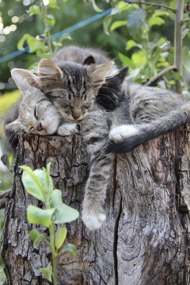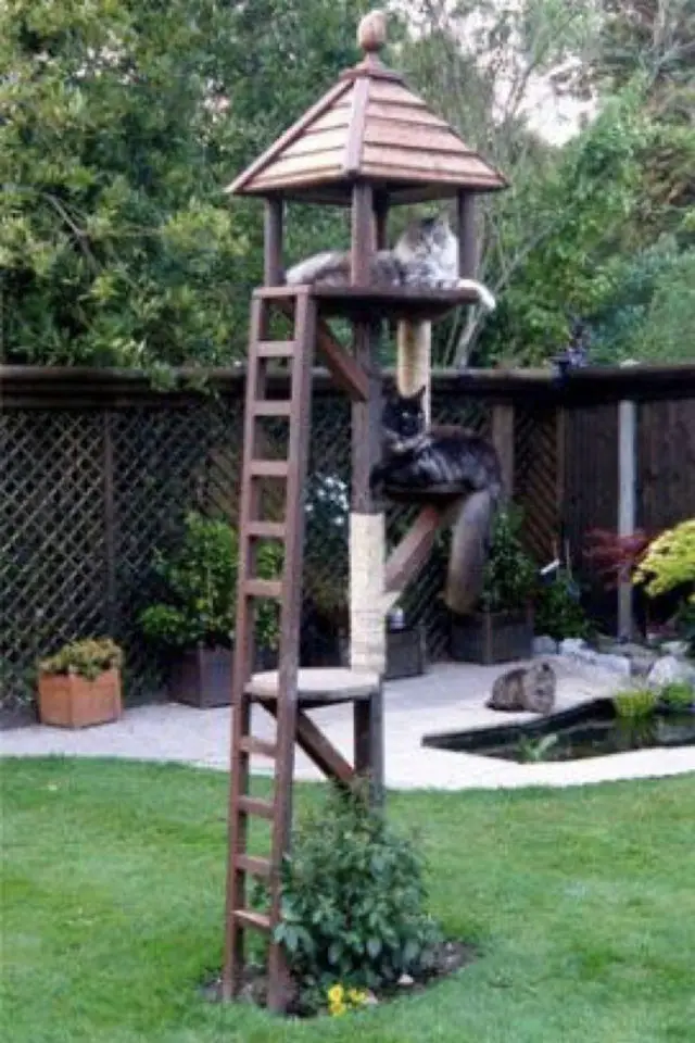 Chats perchés dans le jardin