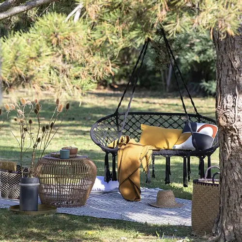 - Ajoutez des coussins ou des galettes sur les chaises de jardin pour plus de confort (et éviter d'avoir les cuisses qui collent sur la chaise)