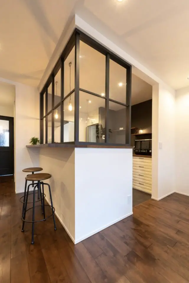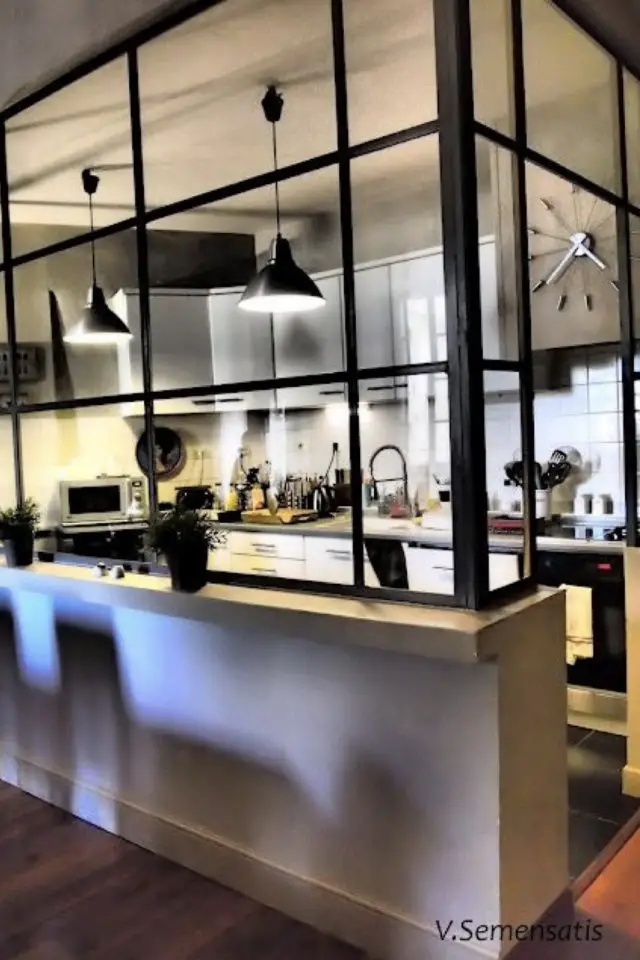 Une grand mur vitré pour séparer la cuisine avec classe