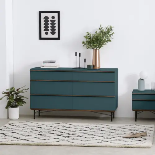 09 • Dans la grande majorité des cas, le bleu est considéré comme une couleur froide. Il y a évidemment des exceptions à cette pseudo vérité générale. Le bleu foncé à tendance à être ressenti comme plus chaleureux puisqu'il crée un sentiment d'intimité. Le bleu canard est lui aussi une couleur plus chaude qu'un bleu classique. Cela tient de son mélange de vert et de bleu ainsi qu'au fait qu'il reste une teinte foncée. Ces types de bleus sont intéressant dans la chambre parce qu'ils vous permettent à la fois de créer un environnement calme ET chaleureux.