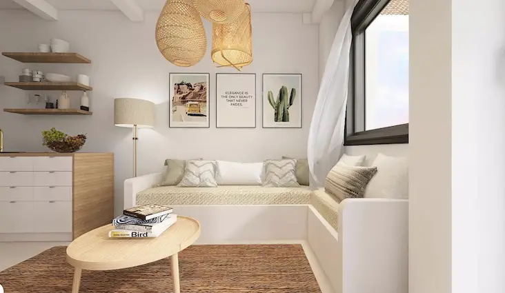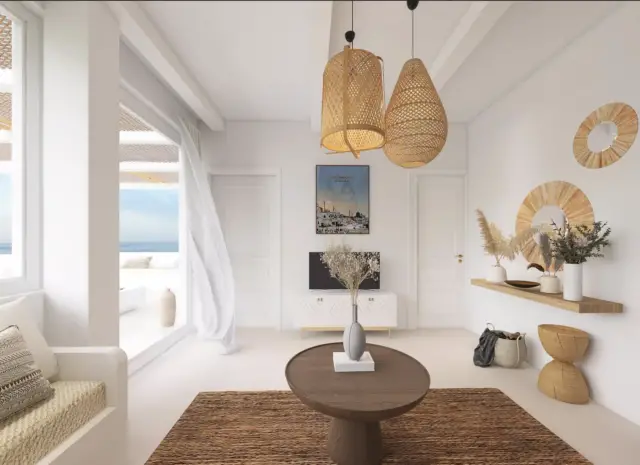 Cet ainsi que l’intérieur de A. laisse place à un style minimaliste alliant une ambiance bohème et océanique où chaque élément est travaillé avec soin pour accentuer cette impression d’évasion. Du bois, du rotin qui sont les matières indispensables au style bohème, des couleurs claires puisque le blanc n’est pas synonyme de vide mais plutôt symbole de pureté, et enfin de belles suspensions pour harmoniser cette atmosphère. Il est important de cultiver une ambiance reposante pour obtenir un havre de paix.