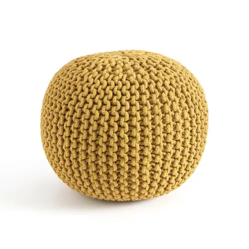 1/ Vase jaune 2/ Cache pot jaune 3/ Plaid tricoté grosse laine 4/ Plaid 5/ Housse de coussin à motifs 6/ Pouf en velours moutarde 7/ Coussin avec liseré noir 8/ Pouf tressé 9/ Tête de lit 10/ Rideau de douche 11/ Chauffeuse 12/ Fauteuil