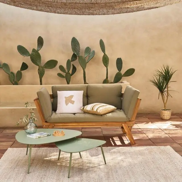 - Canapé de jardin 3/4 places en bois d'acacia et polyester recyclé vert kaki - Maisons du Monde
