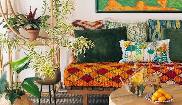 quotidien deco tendance couleur salon coussin mix and match plantes vertes