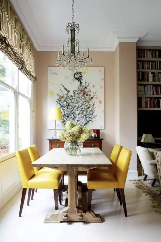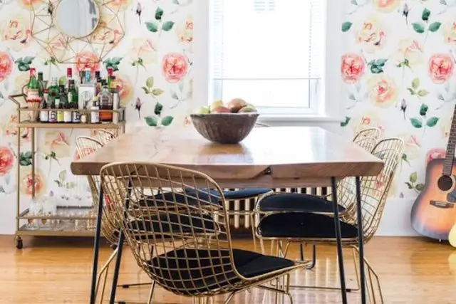 exemple couleur petite salle à manger luminosité papuer peint couleur pastel floral