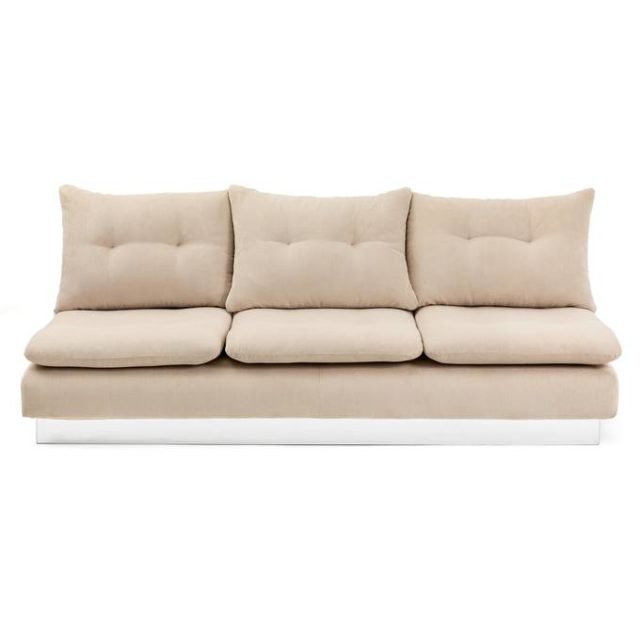 02 • Ici le tapis est plus naturel, en jute. Il donne une autre dimension au sol uni et blanc (on est d'accord que ça ne court pas les rue ce type de sols!). Le tapis est le seul objet déco aussi foncé. Toutes les couleurs sont dans un camaïeux de beige pour de la douceur. Même le choix du bois est dans cette dynamique: des bois clair, doux que ce soit par leur forme que par le choix du cannage (bien plus léger qu'un habillage plein). Le canapé est une invitation au repos, à la détente avec ses formes rondes. A se demander si ce n'est pas un gros matelas qui a été roulé, à la manière d'un futon.