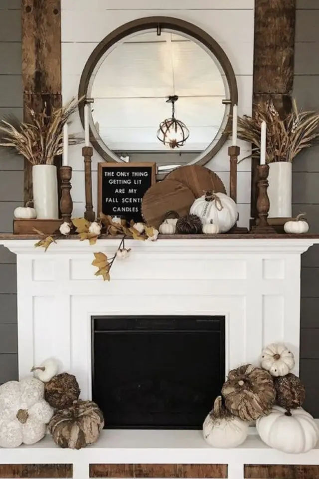 Un bon feu de cheminée... Il n'y a rien de tel pour se détendre après une dure journée quand il fait froid. (Je parle en connaissance de cause, là où je vis on a rallumé la cheminée il y a quelques jours...) Que votre cheminée soit active ou qu'elle soit simplement décorative, le changement de saison est la bonne occasion pour renouveler la déco qui se trouve dessus. Quelques plantes vertes, des bougies sur de jolis bougeoirs, un nouveau miroir... Les possibilités sont vases pour rendre la cheminée plus cosy et plus à votre image. Evidemment, si vous allumez votre cheminée et qu'elle vous sert de chauffage, ne mettez rien devant de foyer qui pourrait prendre feu. Votre déco ne doit pas empiéter sur la sécurité de votre logement!