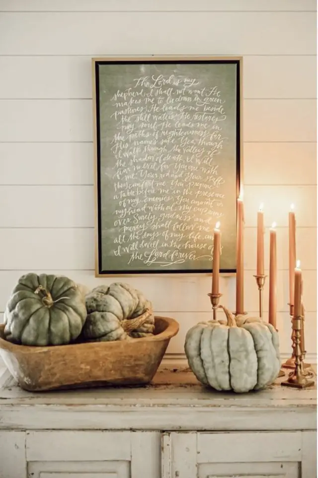 Les citrouilles, courges, potimarrons et potirons sont souvent assimilés à Halloween, fête essentiellement américaine. Mais ce sont avant tout des légumes d'automne qui se conservent très bien et qui peuvent servir comme décoration. En petit modèle (c'est à dire quand ça ne fait pas 5kg ou plus...), ils trouvent facilement leur place dans la maison. Vous le verrez avec les images juste en dessous, j'ai un coup de coeur pour les potirons blancs. On a la forme du légumes mais il est bien plus facile de l'intégrer dans sa déco grâce à sa couleur neutre. On peut même s'en servir en déco de table pour un repas familial.