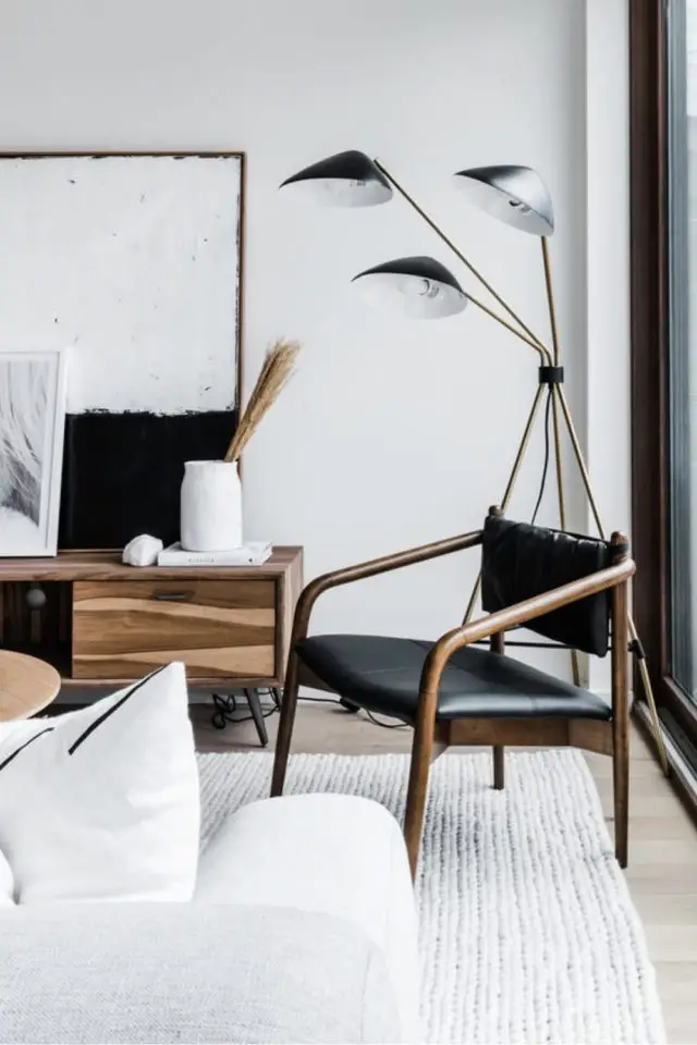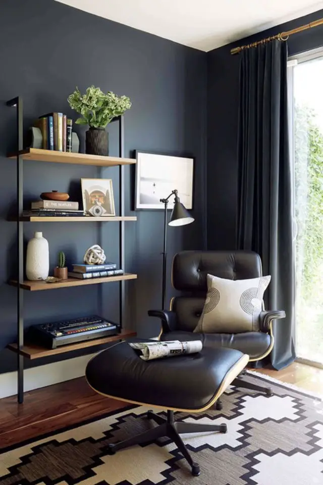 Le cuir noir est synonyme d'élégance, il est sobre et intemporel. Comme je l'ai écrit plus haut, il est souvent associé au style mid century modern, c'est à dire les années 40 à 60 outre Atlantique. On peut par exemple penser à l'emblématique fauteuil Lounge de C. Eames qui est fait de bois et de cuir.