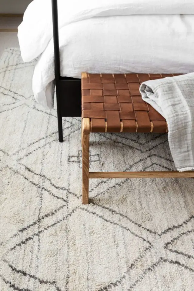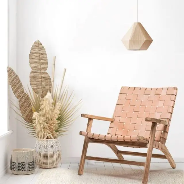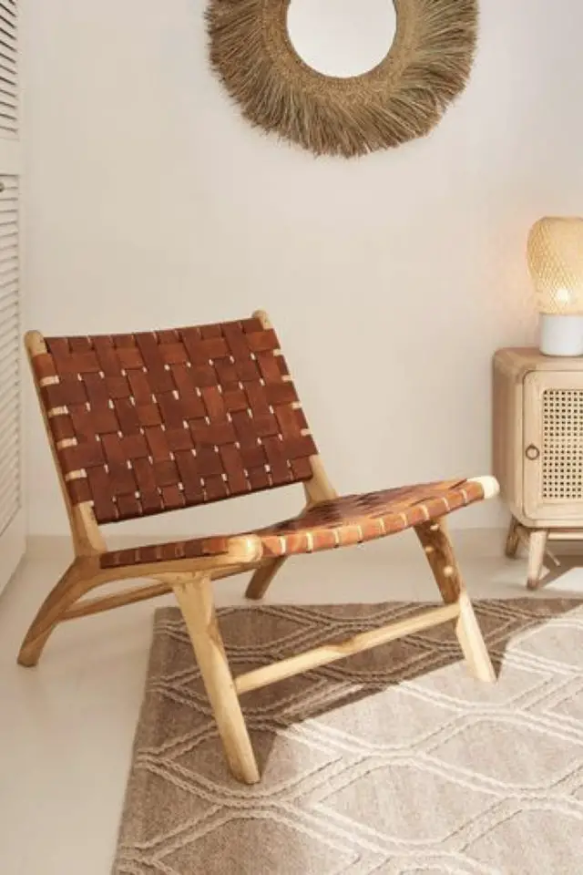 - Cuir tissé à l'image du cannage pour un fauteuil design