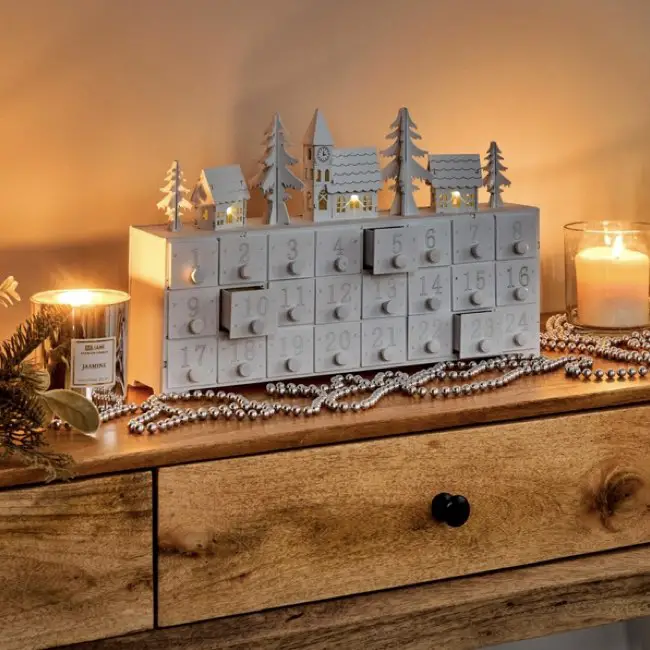 Calendrier de l'avent led 24 tiroirs decoration lumineuse noël beige - Maisons du Monde