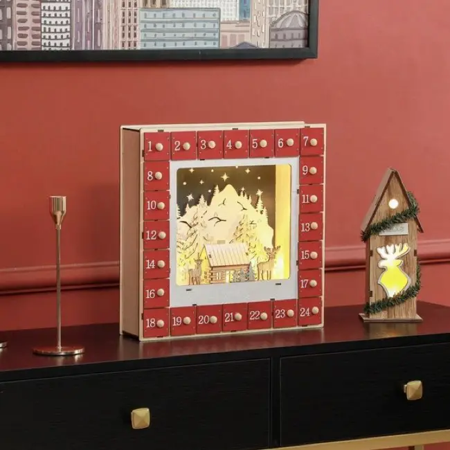 Calendrier de l'avent led en bois 24 tiroirs à remplir décoration lumineuse rouge